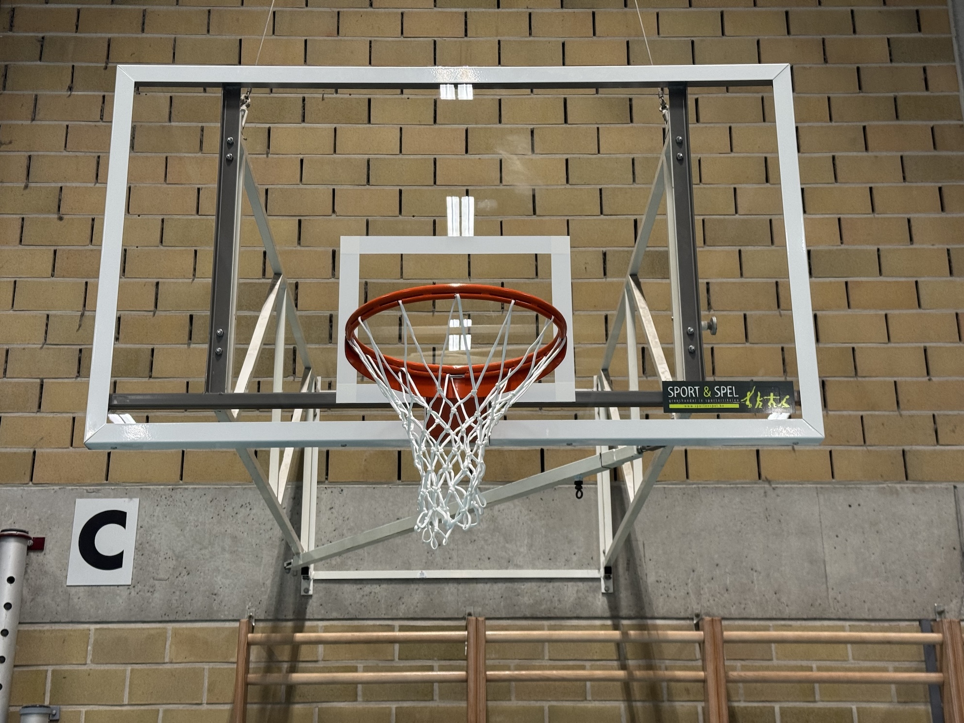 Wij monteerden onze robuuste basketbal wandinstallatie G8248 met basketbal oefenborden B1714 aan een bestaande wand. Met hoogteverstelling om de ringhoogte snel te veranderen van 260 cm voor kinderen naar een wedstrijdhoogte van 305 cm. Deze solide constructie van gepoedercoate stalen profielen voldoet aan de eisen van DIN EN 1270. Met bijhorende basketbalring B1701 en basketbalnet B1728 ontstaat er zo een ideale basketbal trainingsomgeving.
