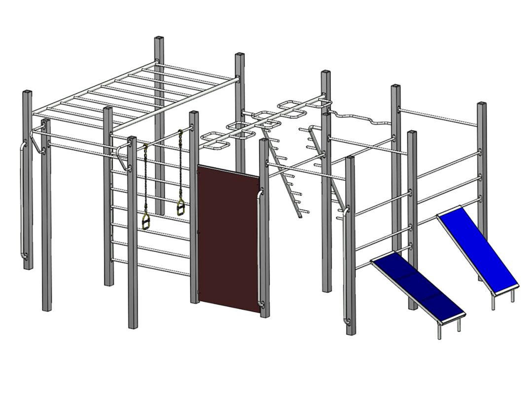De Calisthenics-installatie Cube is ontwikkeld in samenwerking met ervaren Calisthenics-sporters en biedt een ruimtebesparende, maar toch veelzijdige trainingsmogelijkheid voor kracht, flexibiliteit en lichaamsbeheersing. Met zijn robuuste constructie is het ideaal voor parken, sportfaciliteiten en openbare bewegingsruimtes. De installatie ontlast klassieke speeltoestellen door gerichte training voor jongeren en volwassenen mogelijk te maken. Of het nu als individueel toestel is of in combinatie met een bestaand 4FCIRCLE® bewegingsparcours - deze installatie biedt een professionele outdoor trainingservaring voor het algemene publiek. Dankzij verzinkte stalen palen en roestvrijstalen stangen is het extreem duurzaam en weerbestendig. Een aanvullend instructiebord kan basisinstructies voor beginners bieden.