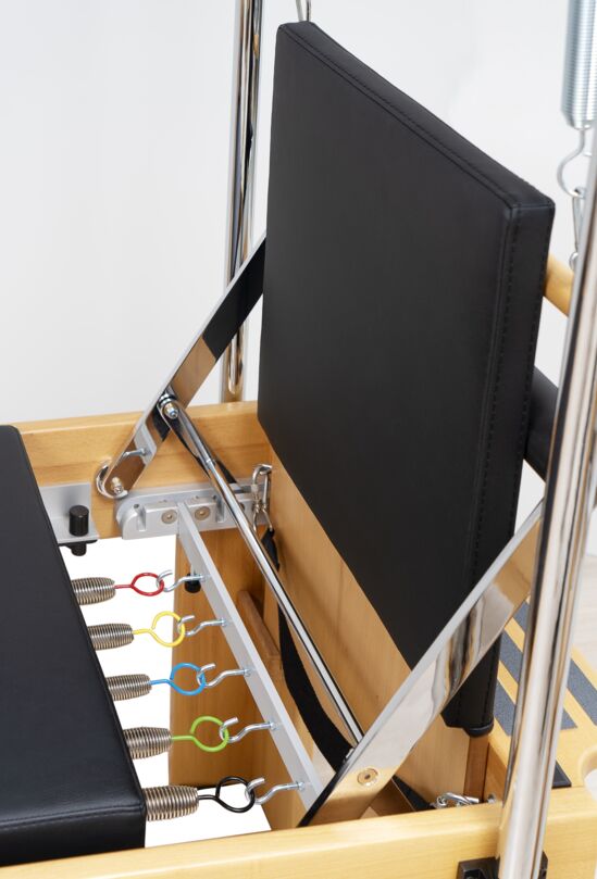 De Bluegates Pilates® Tower Reformer is een veelzijdig multifunctioneel apparaat dat een uitgebreide training van de romp- en diepe spieren mogelijk maakt. Dankzij zijn slimme constructie kan de Tower in een handomdraai veranderd worden in een volwaardige Reformer - ideaal voor studio's, fysiotherapiepraktijken en veeleisende thuis trainingsruimtes. Hoogwaardig beukenhout, een duurzame laklaag en precies verwerkte metalen componenten zorgen voor maximale stabiliteit, soepele werking en een lange levensduur. Met talrijke instelmogelijkheden, een bijzonder comfortabele voetbar en eersteklas veersystemen biedt dit apparaat een professionele, veilige en veelzijdige trainingservaring.