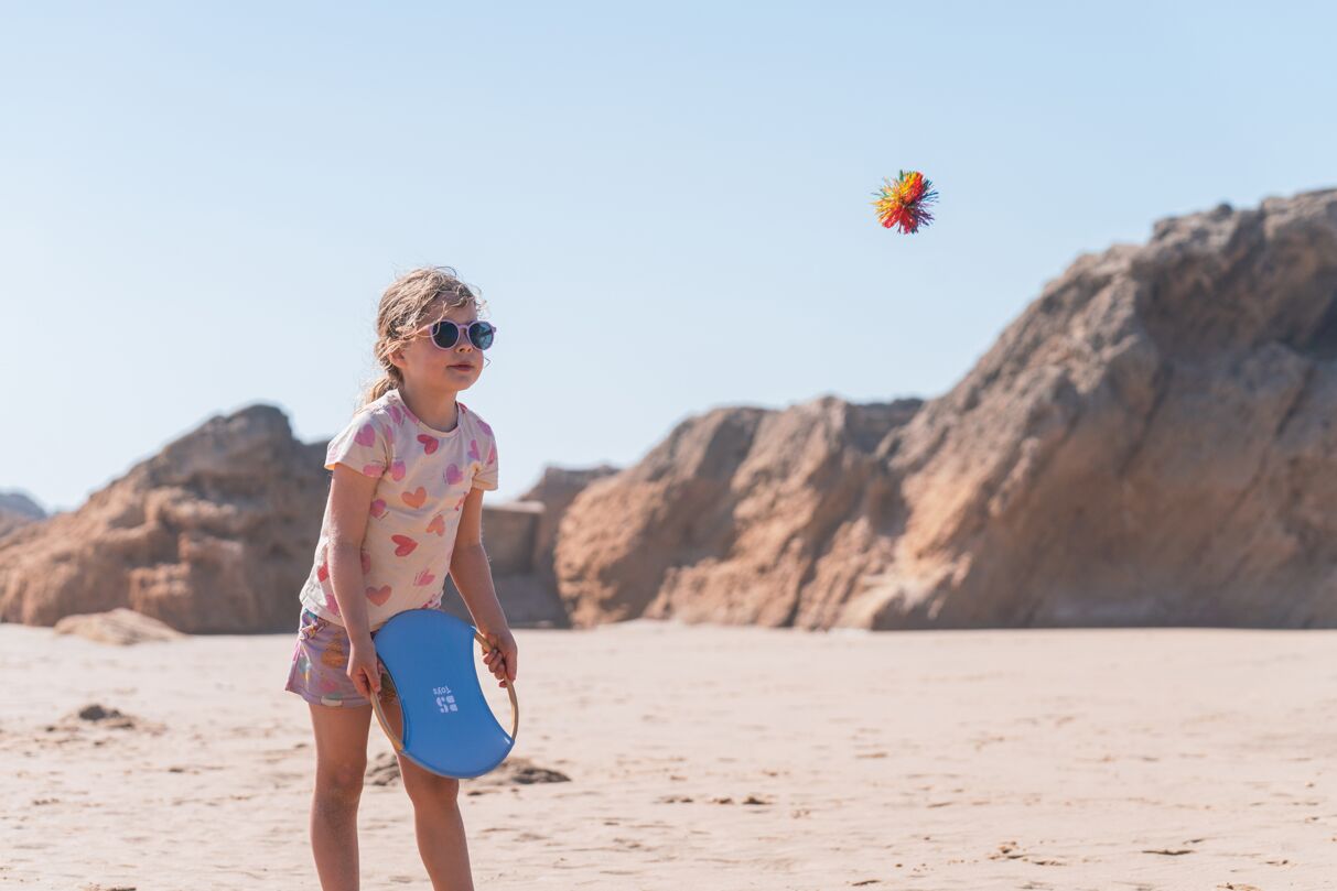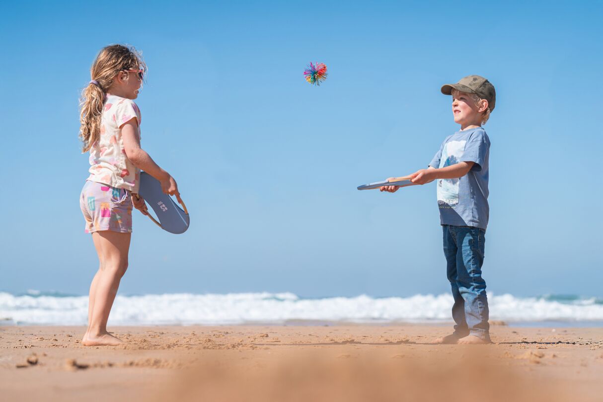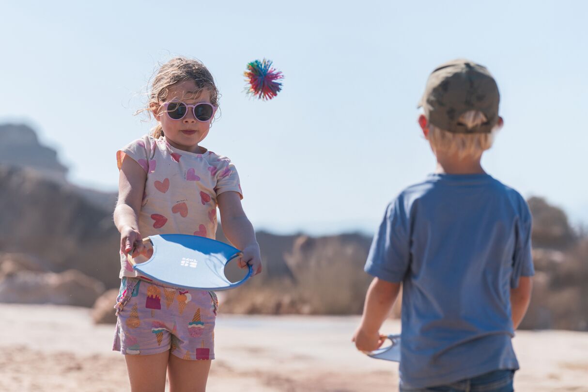 Het Bounce Ball Set is de ideale kennismaking met racketsport voor kinderen. Vervaardigd uit duurzaam bamboe en gecombineerd met een elastische bespanning zorgt het voor bijzonder plezierige en gecontroleerde balwisselingen. De zachte, pluizige bal stuit levendig en motiveert tot beweging buiten. Dankzij het kindvriendelijke formaat en de mogelijkheid om de rackets met beide handen vast te houden, is de set perfect geschikt voor de eerste spelervaringen en bevordert deze spelenderwijs de motoriek en coördinatie.
