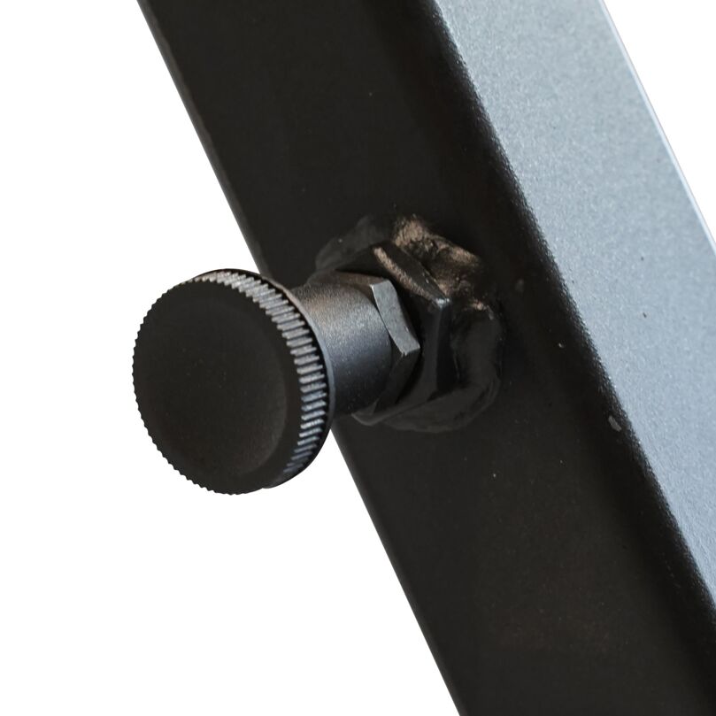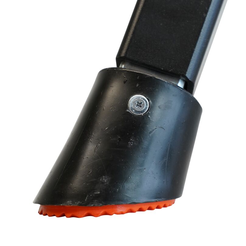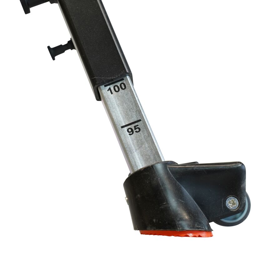 - Hoogte verstelbaar in stappen van 5 cm, één poot traploos verstelbaar