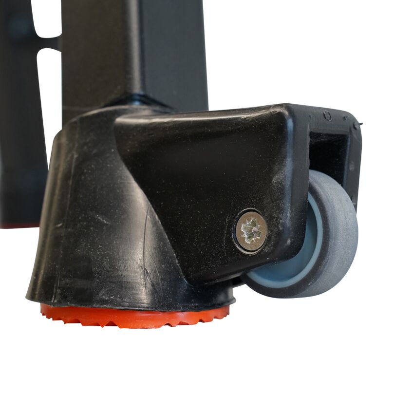 - Vulkollanhoeven met niet-verkleurende rubberen plaat: 2 standhoeven en 2 rijhoeven met wielen