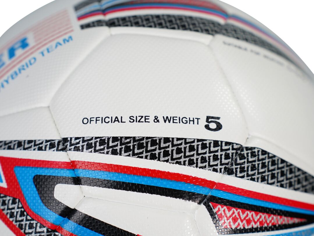 Door de hybride verwerking worden de panelen eerst gestikt en vervolgens gelijmd, waardoor de naden aan de binnenkant van de bal liggen. Hierdoor overtuigt de bal met een bijzonder lage wateropname en hoge duurzaamheid - zelfs bij intensief gebruik. Dankzij zijn stabiele luchtdrukbehoud is de bal ideaal voor alle weersomstandigheden en ondergronden.