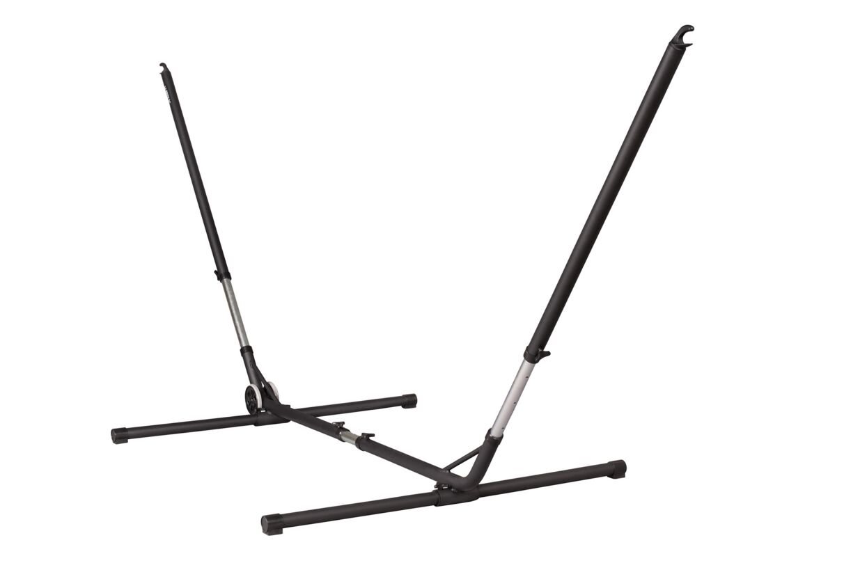 Het hangmattenframe Esterel overtuigt door maximale flexibiliteit en eenvoudige bediening. Dankzij de verstelbare lengte en hoogte is het geschikt voor hangmatten in de maten enkel, dubbel en kingsize - ongeacht of ze met of zonder spreidstok zijn. De stabiele constructie van verzinkt staal zorgt voor een hoog draagvermogen en maakt het frame ideaal voor gebruik binnen- en buitenshuis. Geïntegreerde wielen zorgen voor moeiteloos verplaatsen, zodat u op elk moment flexibel uw favoriete plek kunt kiezen. De eenvoudige montage maakt het doordachte totaalpakket compleet en maakt van Esterel de perfecte basis voor ontspannen momenten.