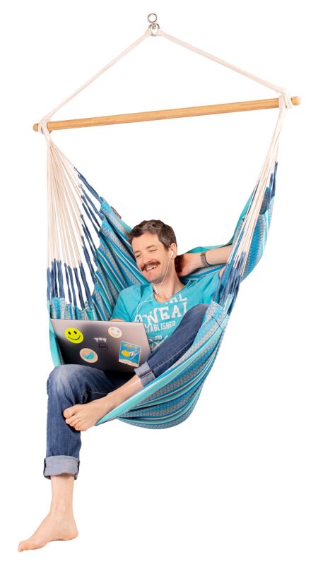 De hangstoel Habana combineert het hoogste comfort met hoogwaardig vakmanschap en zorgt voor een uniek gevoel van ontspanning en lichtheid. Gemaakt van superzachte bio-katoen, past de stof zich comfortabel aan het lichaam aan en biedt royale zit- of ligruimte. Met veel zorg met de hand vervaardigd in Colombia, overtuigt de hangstoel door zijn hoge kwaliteit van vakmanschap en liefdevol geknoopte ophangkoorden. De stevige spreidstok van FSC®-gecertificeerde bamboe en een robuuste roestvrijstalen draaikop zorgen voor extra veiligheid en duurzaamheid. Of het nu in de tuin, op het terras of in de woonruimte is - Habana creëert overal een gezellige sfeer van welzijn.