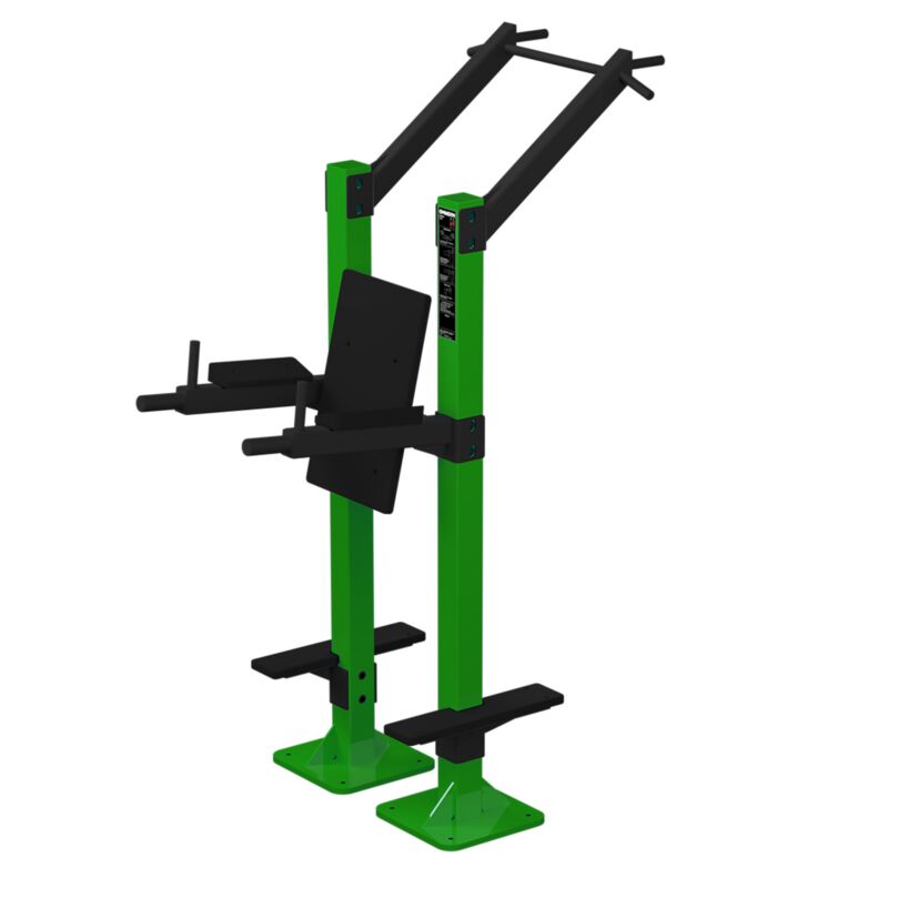 Multifunctioneel buitenapparaat ontworpen voor beenheffen, dips en pull-ups in verschillende greep posities. Hierdoor wordt het Omnigym-assortiment en uw outdoor-training aangevuld met variabele lichaamsgewicht oefeningen voor veel spiergroepen van de bovenkant en romp.