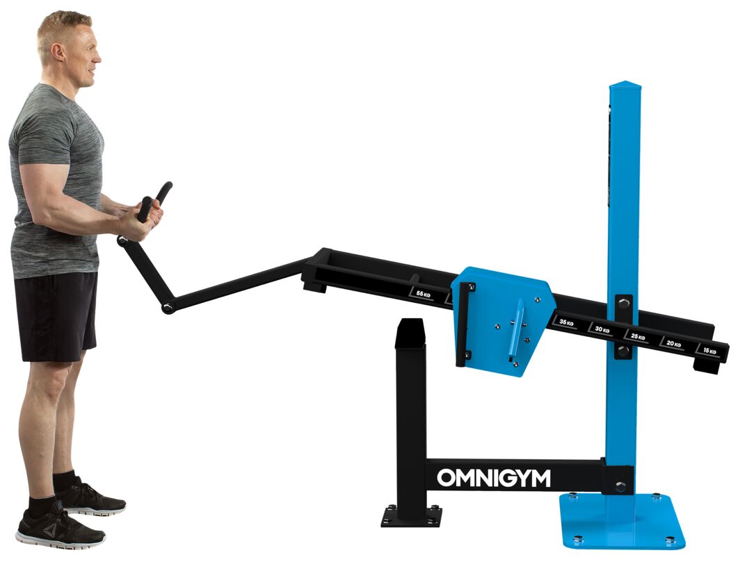 De gewichtsbelasting kan individueel worden aangepast met maximaal twee verstelbare gewichtssledes tussen 15-47,5 kg (met één slede) of 12,5-82,5 kg (met twee sledes). De V-vormige handgreep maakt verschillende greep posities mogelijk voor een comfortabele houding van handen en armen tijdens het trainen.