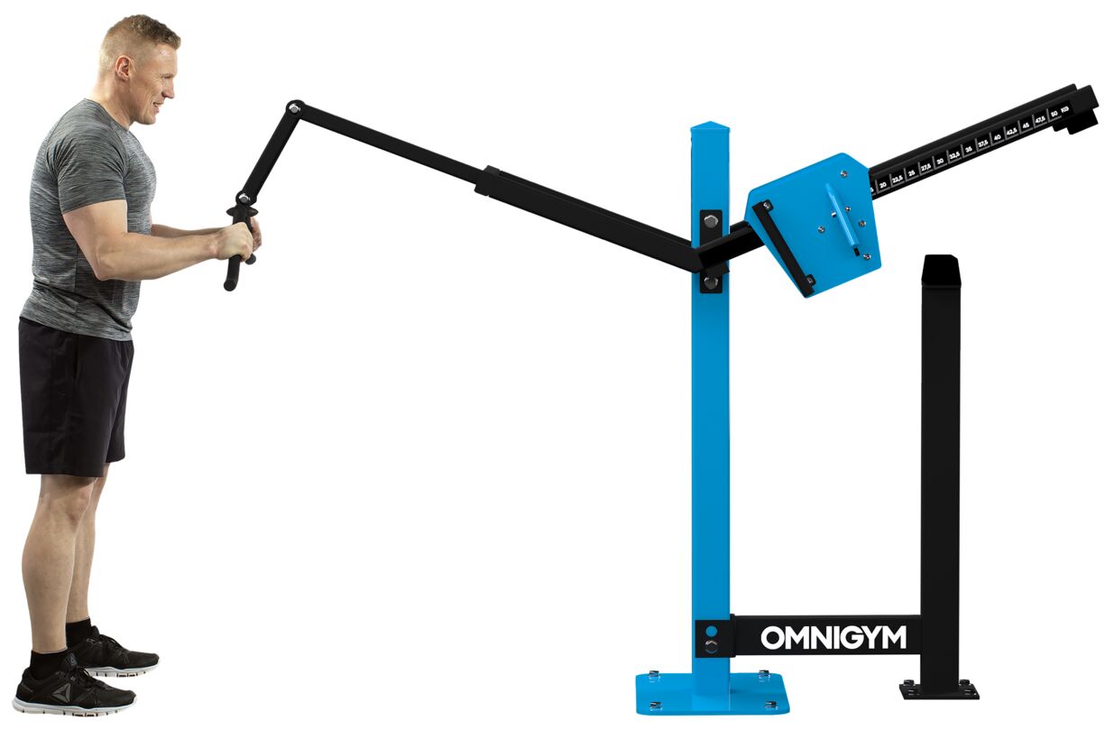 De gewichtsbelasting kan individueel worden aangepast tussen 12,5 en 60 kg door middel van een verstelbare gewichtsslede. De V-vormige handgreep maakt verschillende greep posities mogelijk voor een comfortabele houding van handen en armen tijdens het trainen.