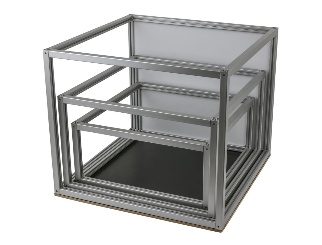 - Grondvlak van ruimte 1: 54 x 54 cm / ruimte 2: 49 x 49 cm / ruimte 3: 44 x 44 cm