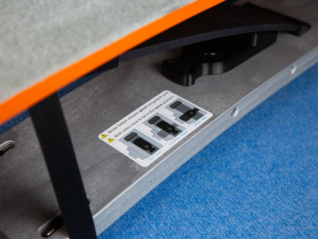De vermelding "tot 30 kg" dient niet als strikte gewichtslimiet, maar als richtwaarde voor typisch gebruik. In de praktijk is meer dan alleen het lichaamsgewicht van belang: lichaamsspanning, techniek en sprongkracht hebben aanzienlijke invloed op de daadwerkelijke belasting van het bord. Als het bord regelmatig "doorzakt" in de harde stand - dus zijn maximale doorbuiging bereikt - verandert het springgedrag hoorbaar, voelbaar en zichtbaar. In dit geval raden wij aan over te stappen op een sterker bordmodel.