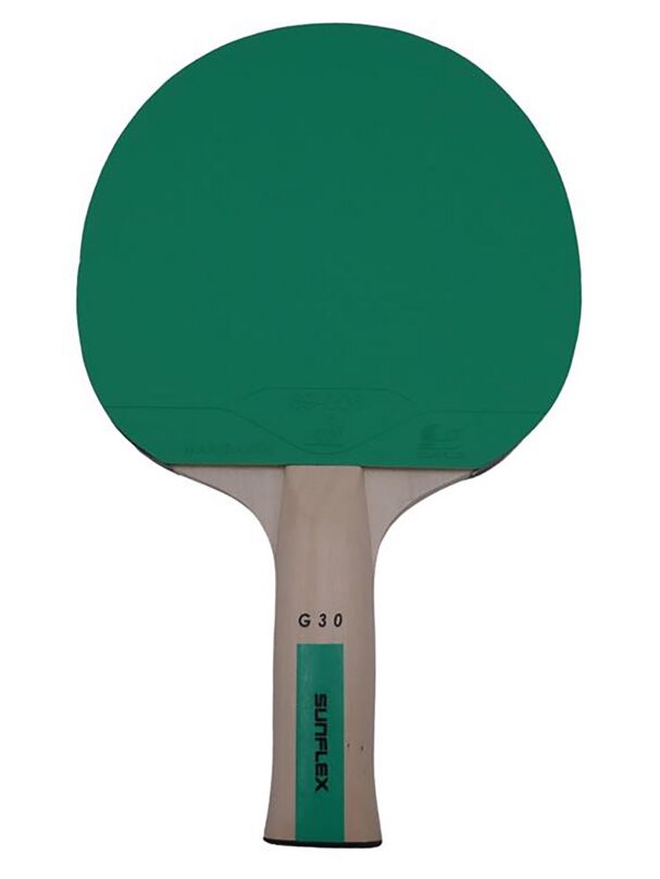 De tafeltennisbat G30 uit de Color Comp-serie van sunflex® combineert een aantrekkelijk ontwerp met geweldige spelkwaliteiten. De rubbers zijn zwart en groen, wat vooral bij kinderen en jongeren in de smaak valt. De anatomisch gevormde greep, het door de ITTF goedgekeurde rubber en de 1,5 mm dikke spons kenmerken de bat en zijn spelkwaliteiten.