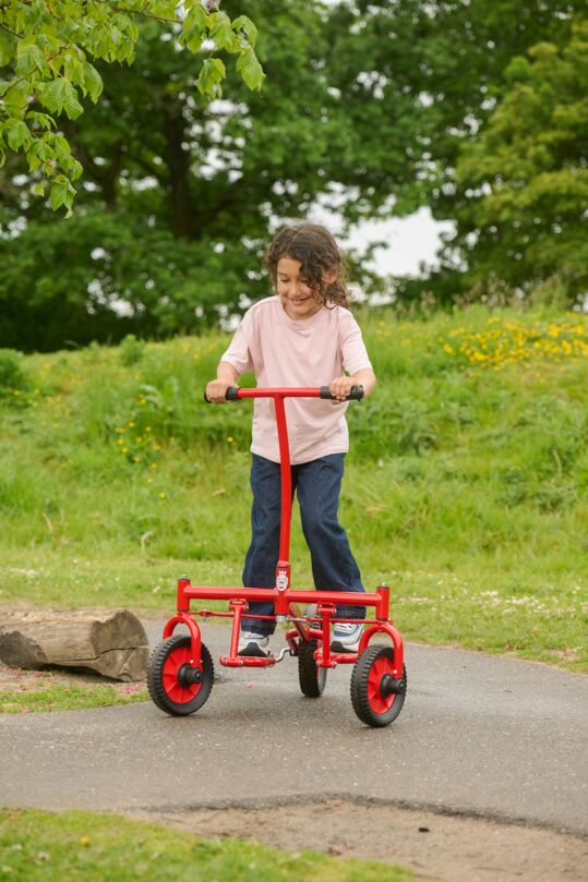 De Step Roller is een veelzijdig bewegingsvoertuig voor kinderen in de kleuter- en lagere schoolleeftijd van 4 tot 7 jaar. Met zijn twee dynamische voetplanken die een zachte, crosstrainer-achtige beweging mogelijk maken, bevordert het evenwicht, coördinatie en motorische vaardigheden op een speelse manier. Kinderen bewegen zich stap voor stap vooruit of achteruit en ontdekken nieuwe mogelijkheden van actieve voortbeweging. De robuuste constructie van hoogwaardige materialen zorgt voor veiligheid en duurzaamheid - ideaal voor scholen, kleuterscholen, verenigingen en gemeentelijke instellingen die motorische ontwikkeling en beweeglijkheid in het dagelijks leven willen integreren.